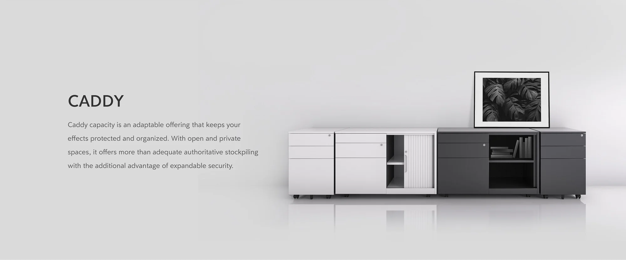 The configuration of CADDY has been broadly expanded, with greater dimensions and more options. You can easily customize your office with multiple combinations.