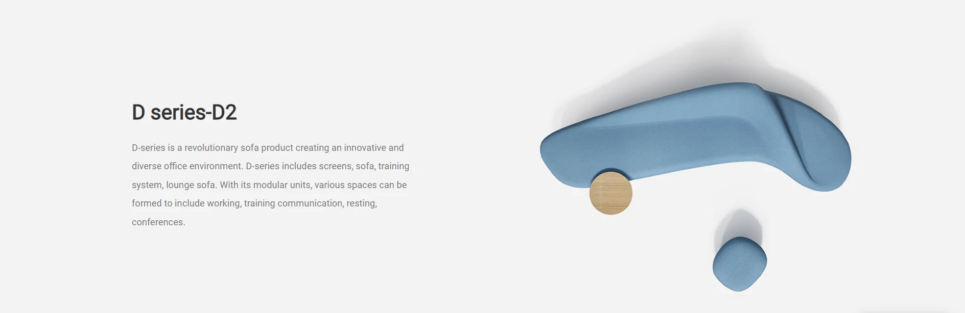 Correlated fabrics feature a colour palette of plentiful choice. The D2 sofa set is available in seven colours: sky blue, dark grey, army green, orange, grey, green and coffee brown.