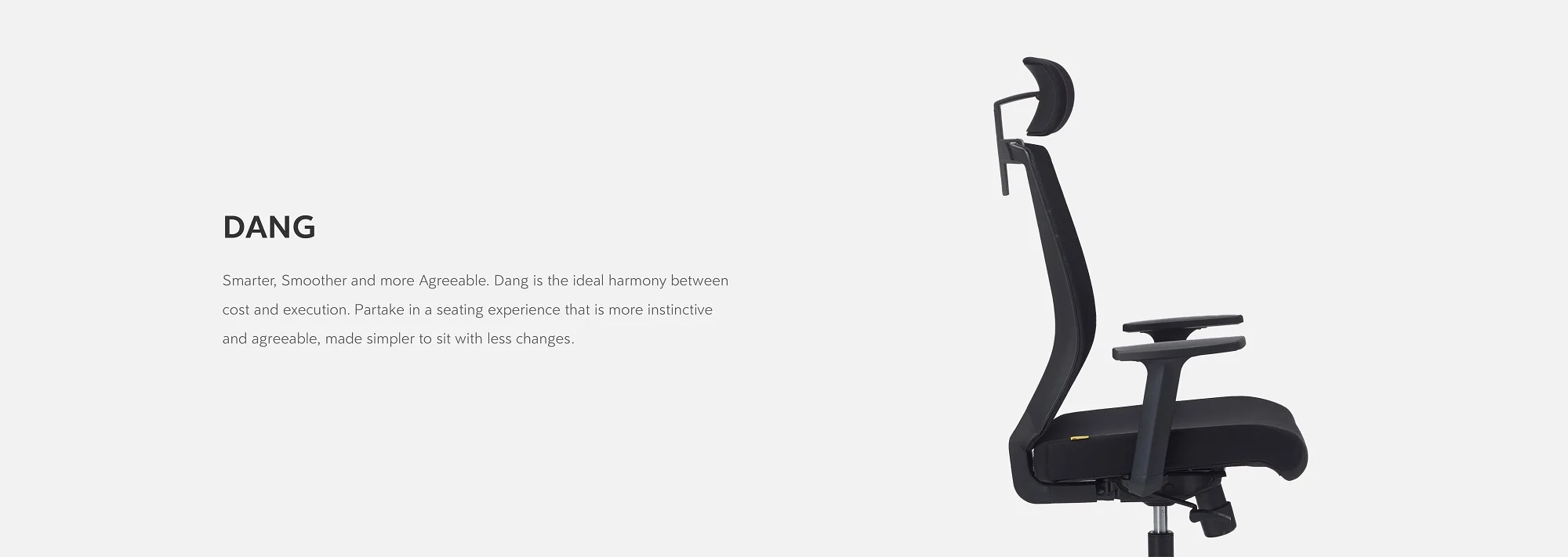 DANG adjustable headrest allows for optimal comfort for all head sizes. Included screw allows for adjustment of the headrest up to 400mm, from 30mm elevation. This ensures that your posture is correct while working.