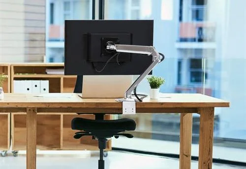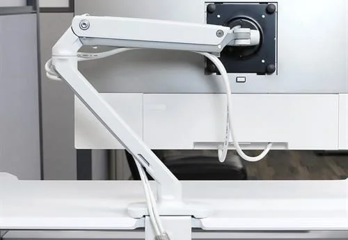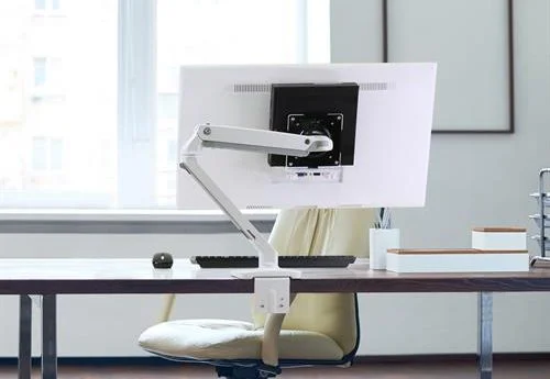 The sleek and lightweight MXV Desk Monitor Arm incorporates a modern V-shaped design to create a stable yet flexible platform for
