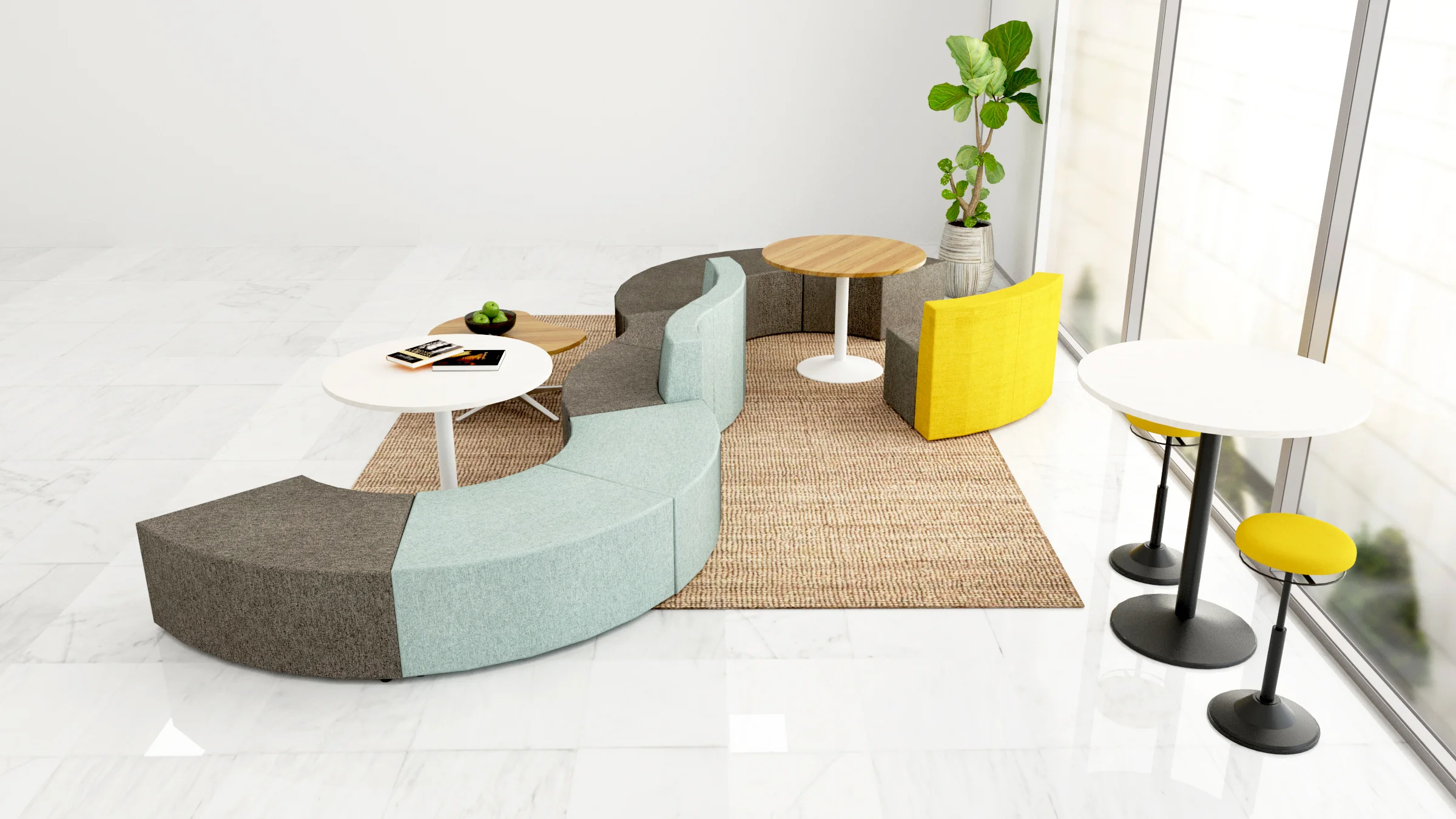 A variety of casual seating and table options allows workers to quickly connect, while subtle screens promote concentration. Its modular and flexible design allows for spaces that support both individual and group work.