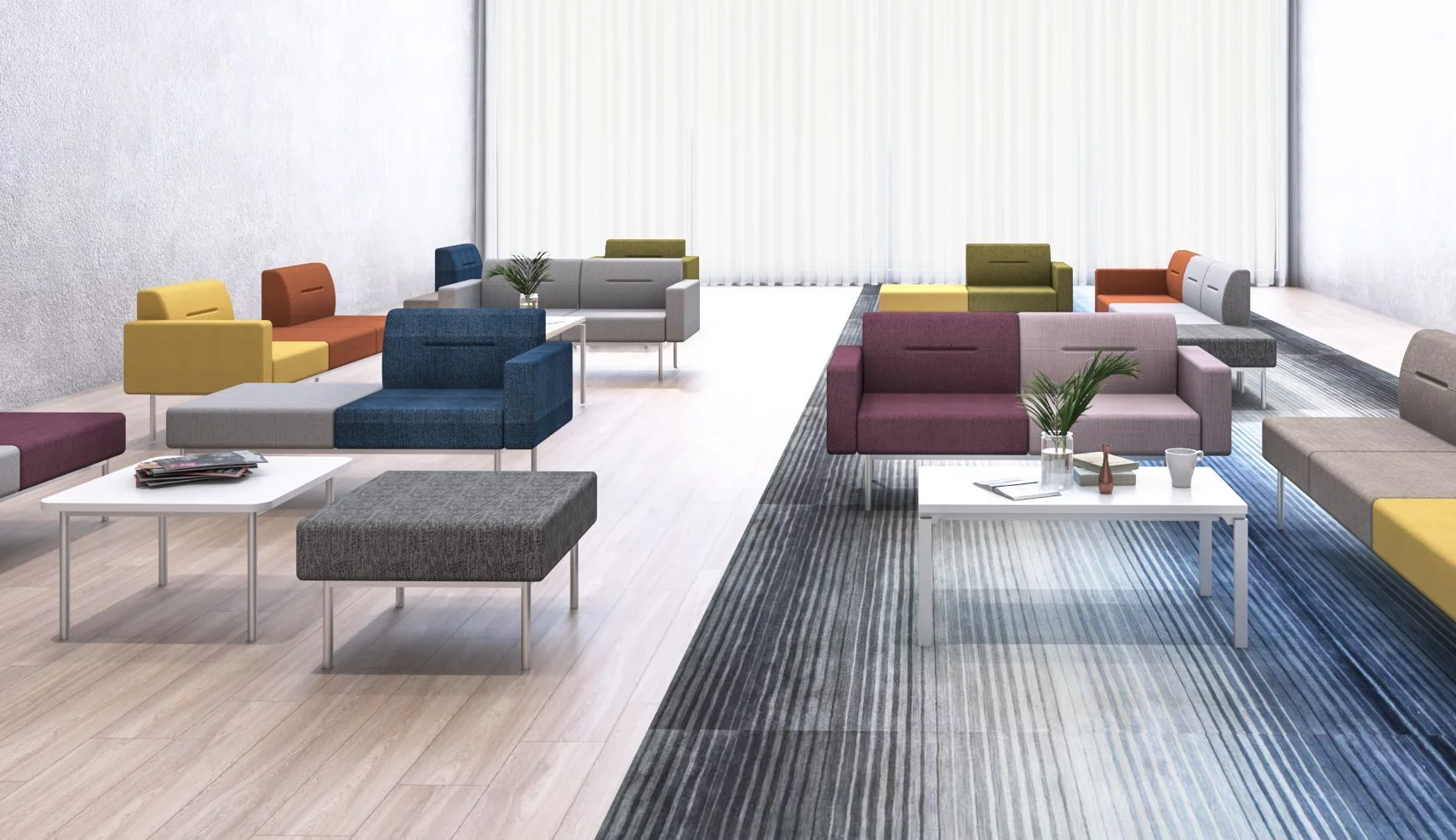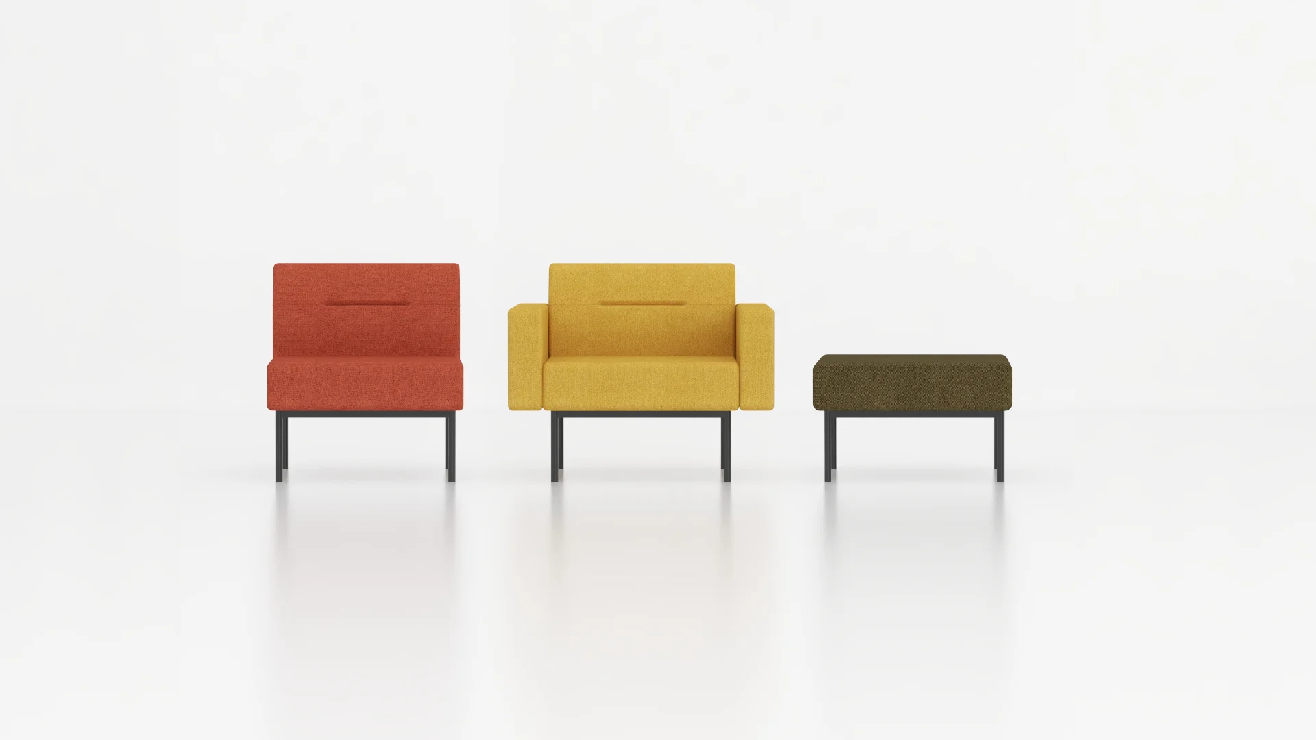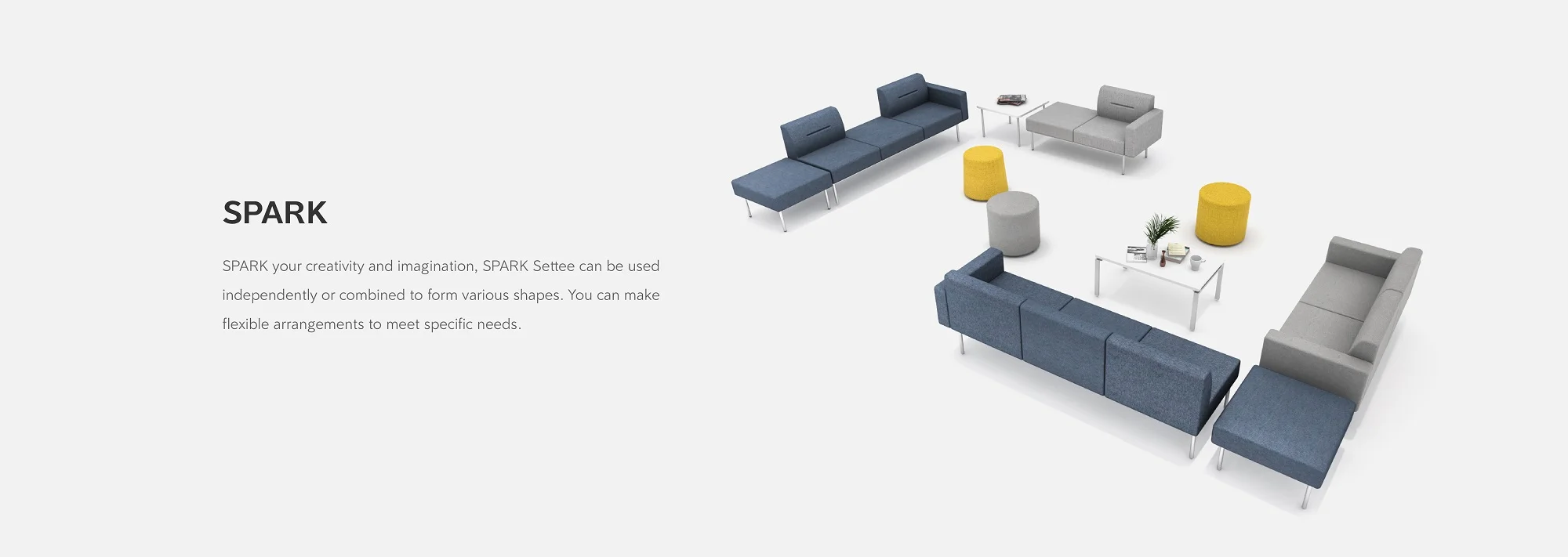With multiple types of seating sparks creativity for employees to move the sofa around the workplace to engage in short discussions, meetings or small talks. Multiple types of seating with each has its own unique armrest and backrest counts.