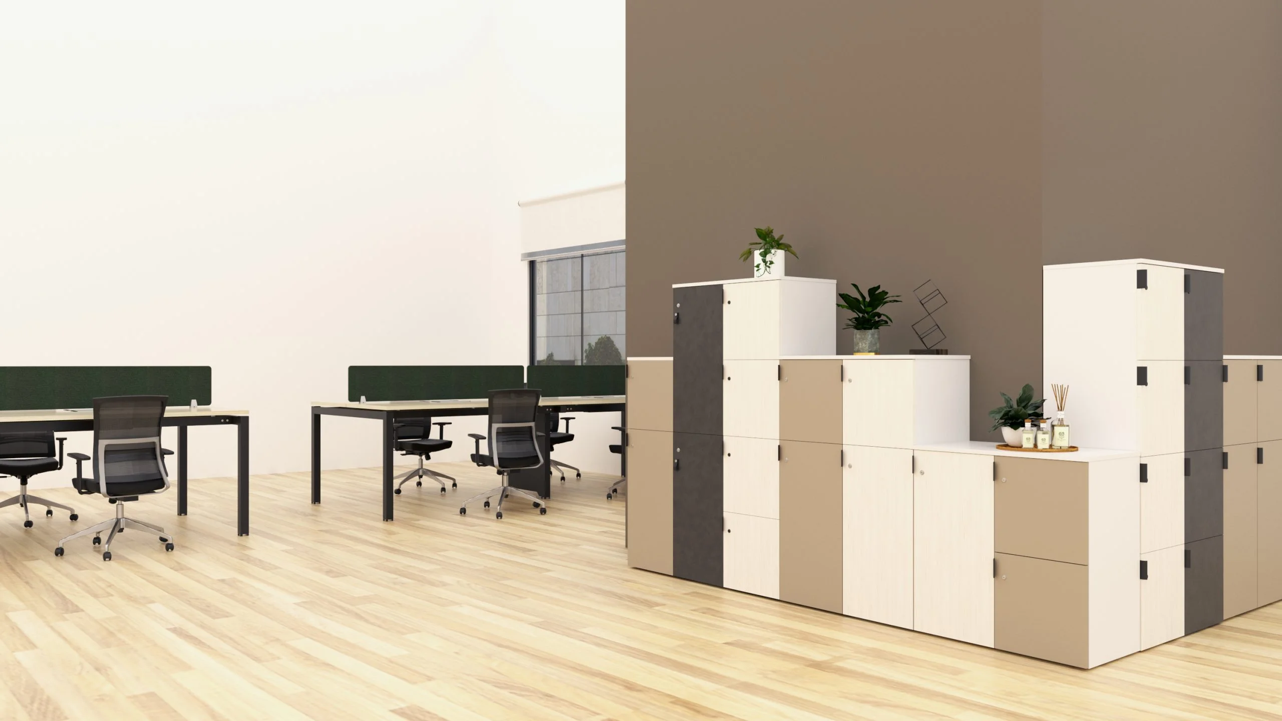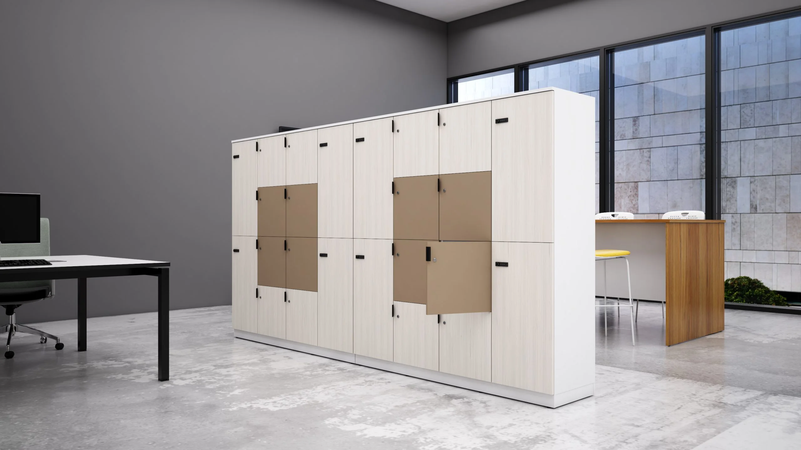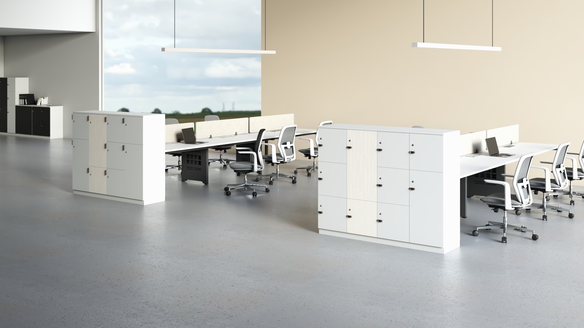 Lockers can be smartly placed within reach of individuals at their workstation or desk system, providing access to personal materials as well as work materials.
