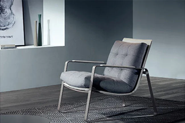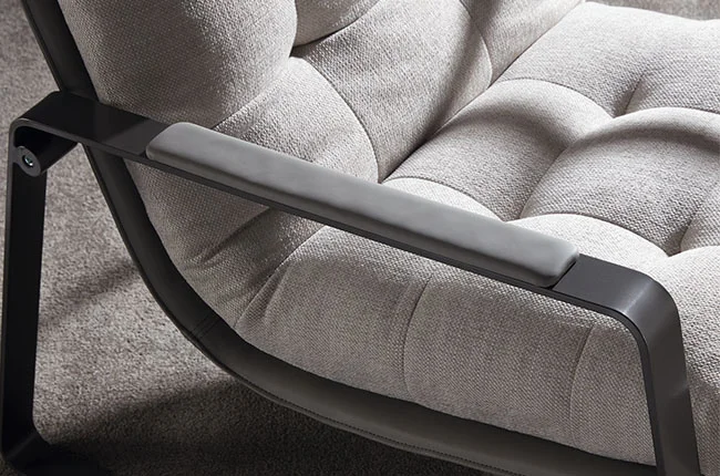The metal-frame design creates a simple appearance, and the chunky and soft upholstery brings boundless comfort. The tufting design is also a constant pleasure.