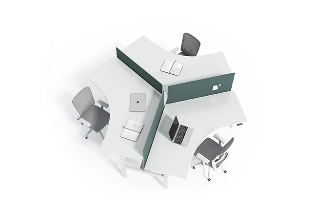 Power and data routing can be a problem in the office but Up1 offers an optional beam system that incorporates power and data cabling. Screens are optional to build a semi-private environment for concentrated work.