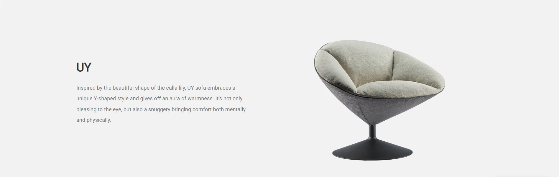 Design of UY was leaded by renowned STUDIO MITO from Italy. Inspired by the blossoming shape of Calla lily, the designer adopts the