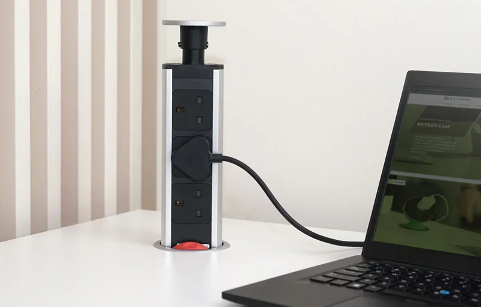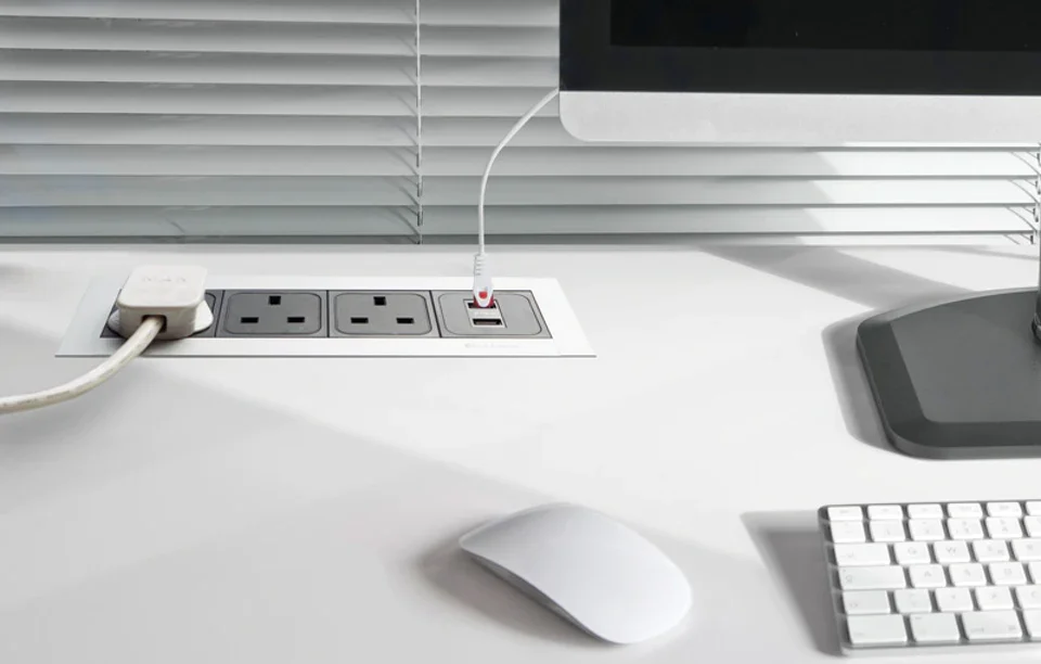 The NETBOX Style combines straight-lined design with high functionality: Its low profile features an aluminum surface, which complements every kind of furniture system. Due to its straightforward installation on the tabletop, the NETBOX Style can be readily integrated into one seamless work surface.